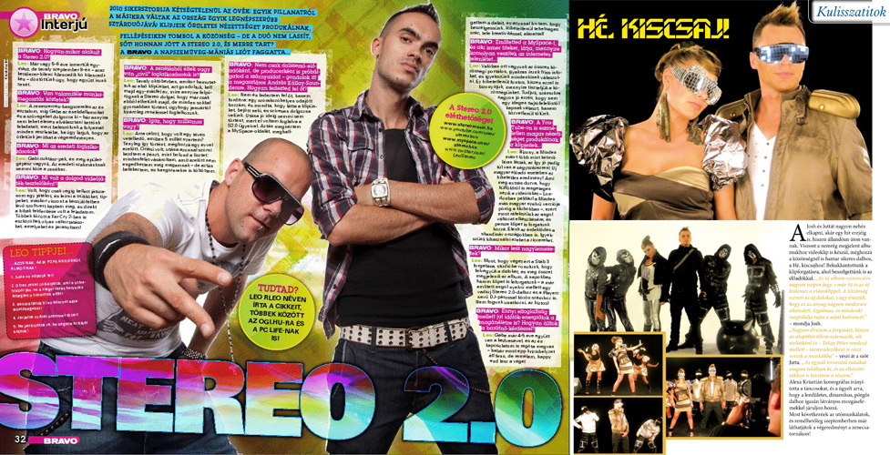 A Tini Lady hasábjain exkluiziv beszámolót láthatsz Josh és Jutta legújabb klipforgatásáról, a Bravoban pedig a Stereo 2.0 -val olvashatsz, egy exkluziv 2 oldalas interjút!